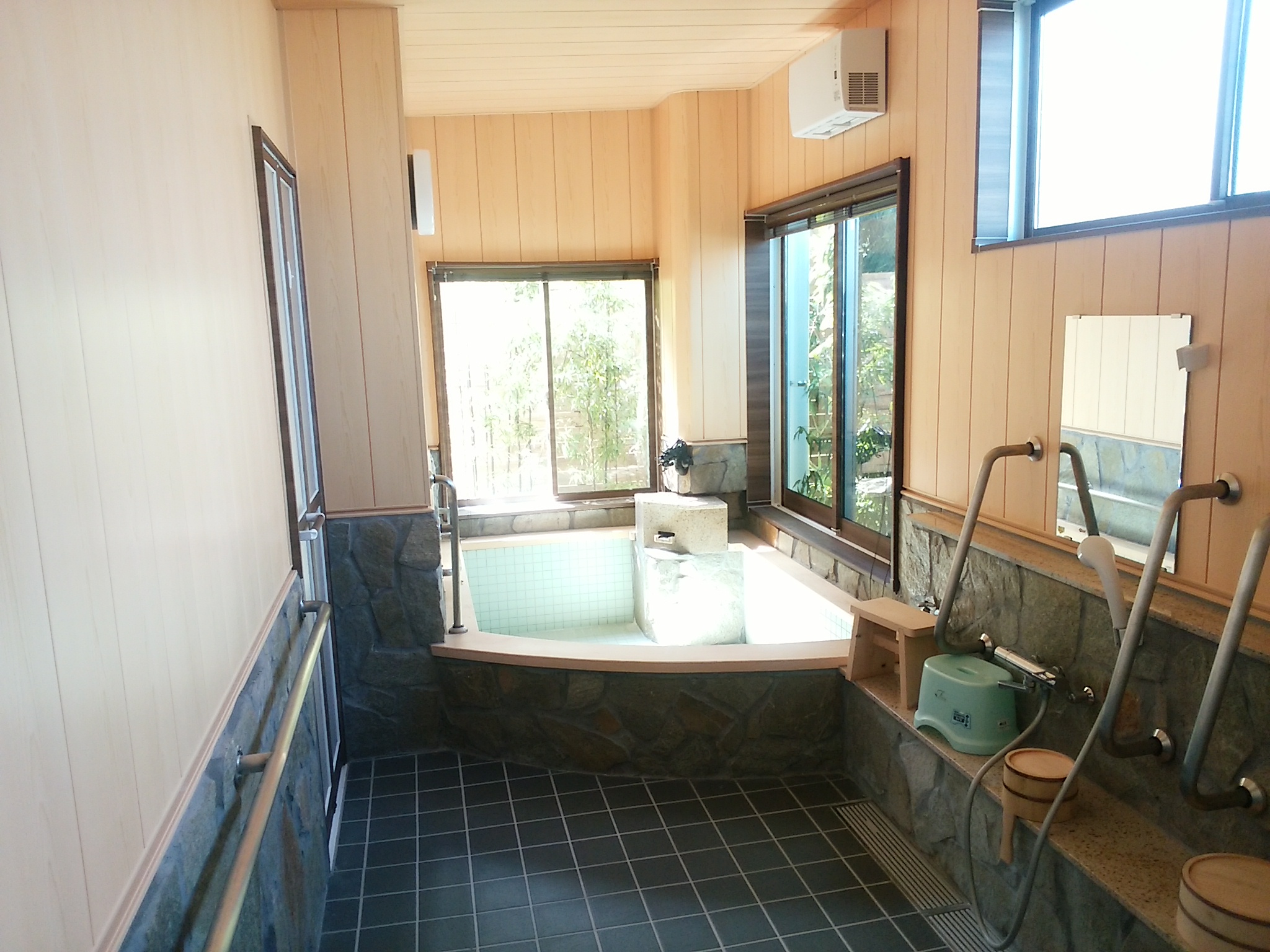 館内には、純和風で日当たりの良い岩風呂、パソコンを自由に使用できる