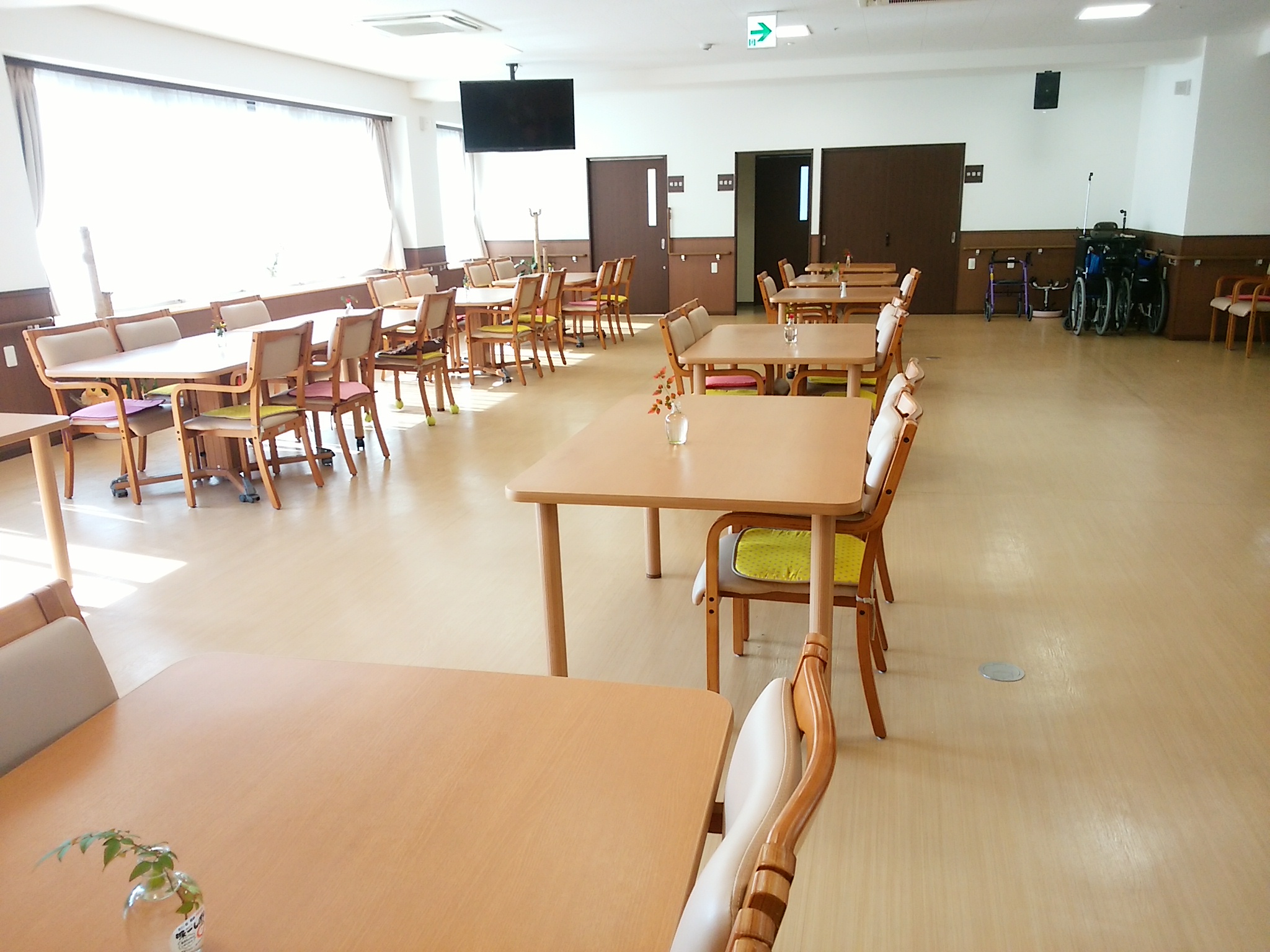 で入居者様と接していらっしゃいました😊 館内の廊下は広々としたスペースで、