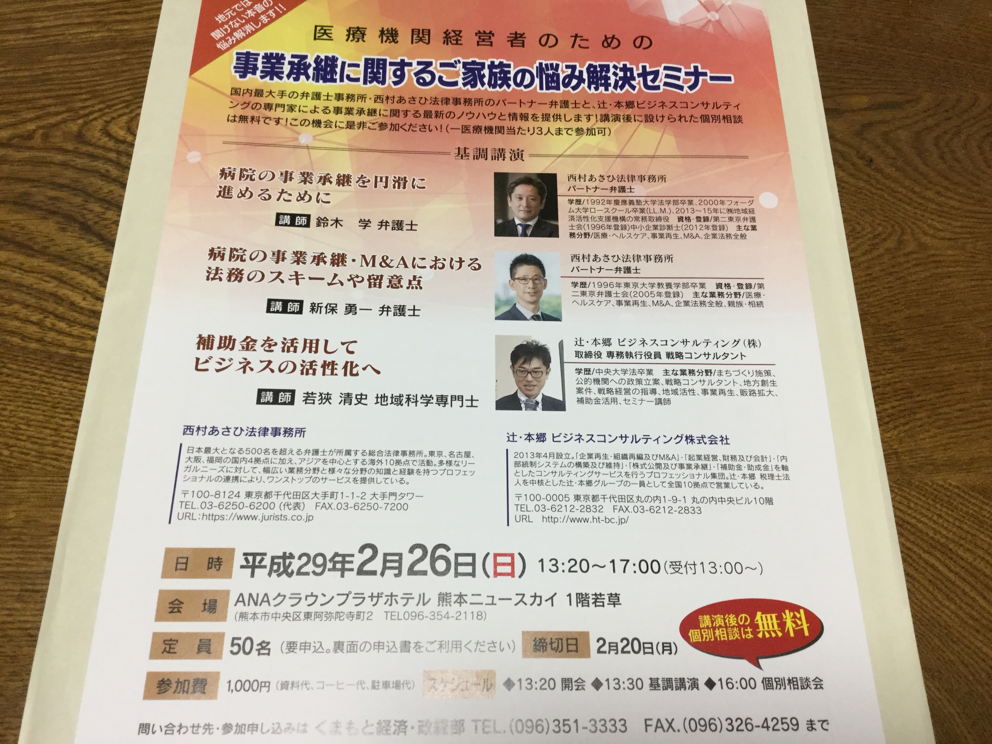 くまもと経済主催、医療機関経営者のためのの『事業承継に関するご家族の