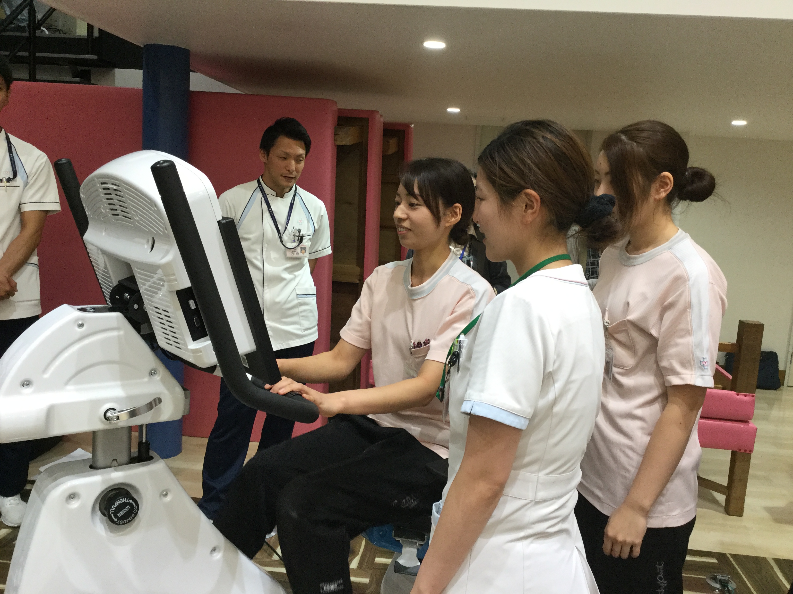 人を起こす時の介助の仕方を実演交えて説明があり、重みを片方に乗せる事で