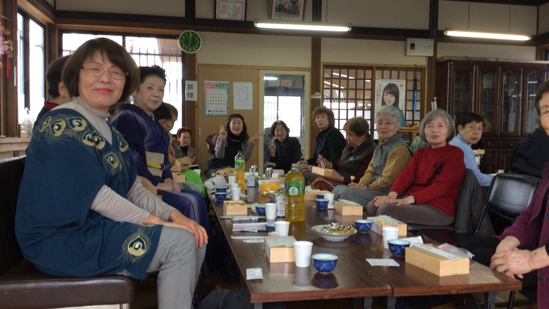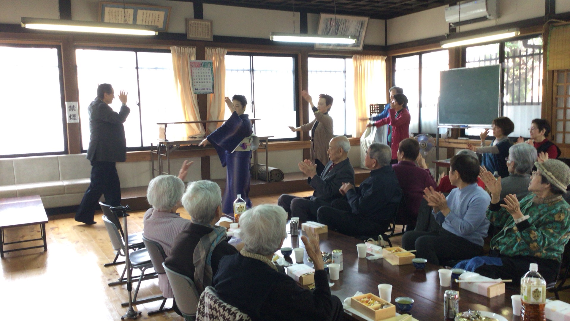 日本舞踊の先生が前に立たれて、皆さんで踊ったり、と