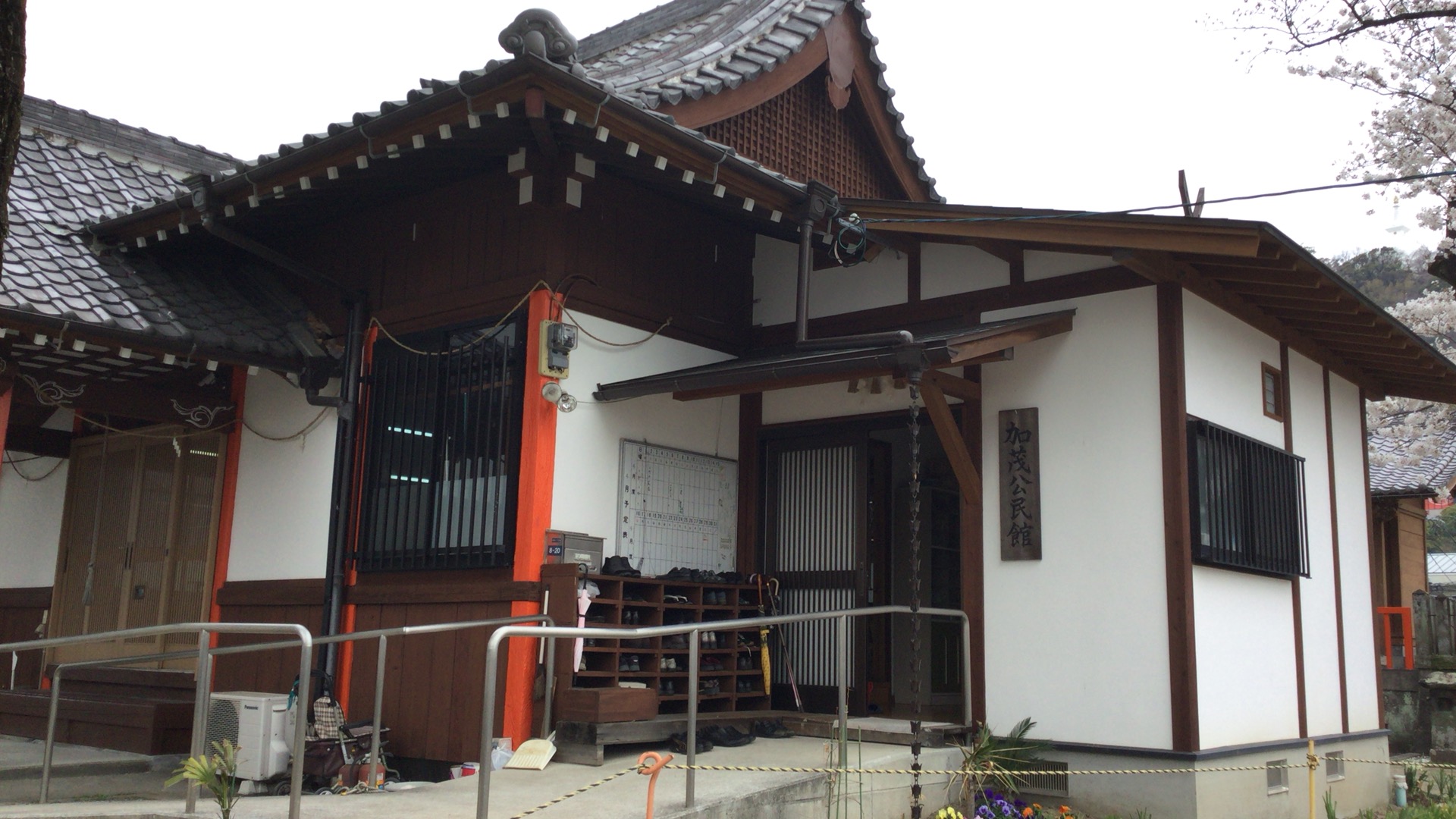 拝殿とつながっている公民館、荘厳な雰囲気です。