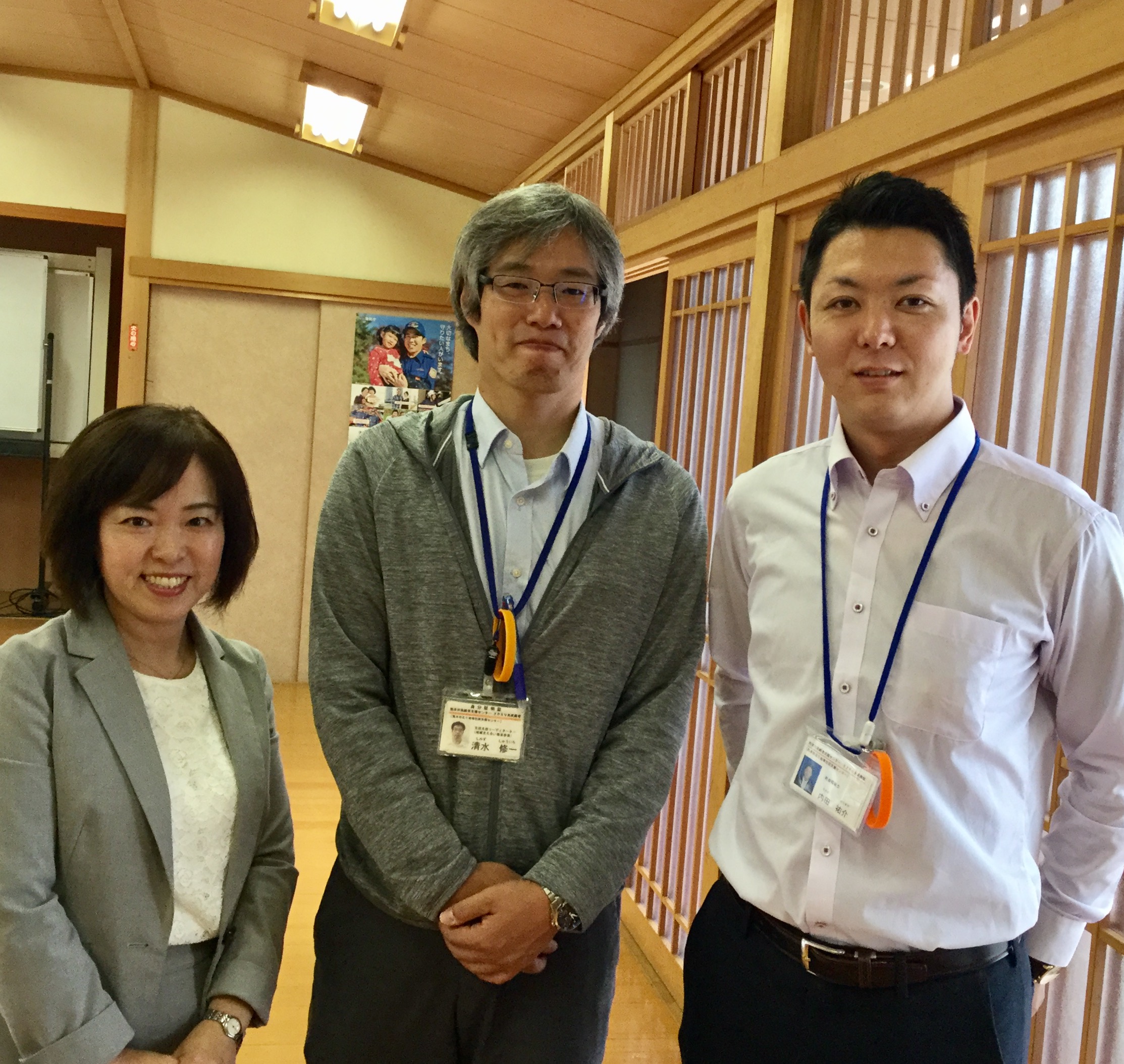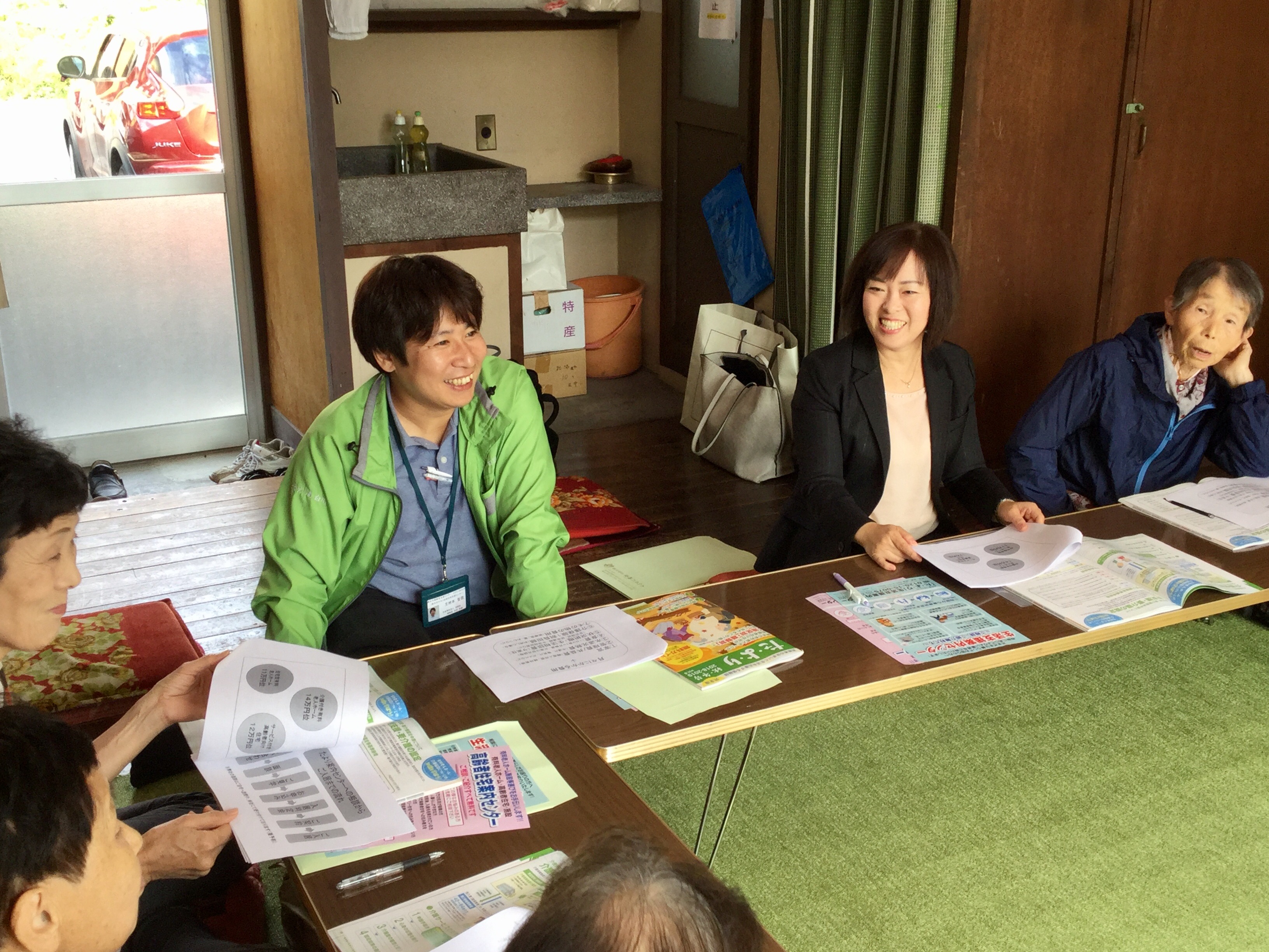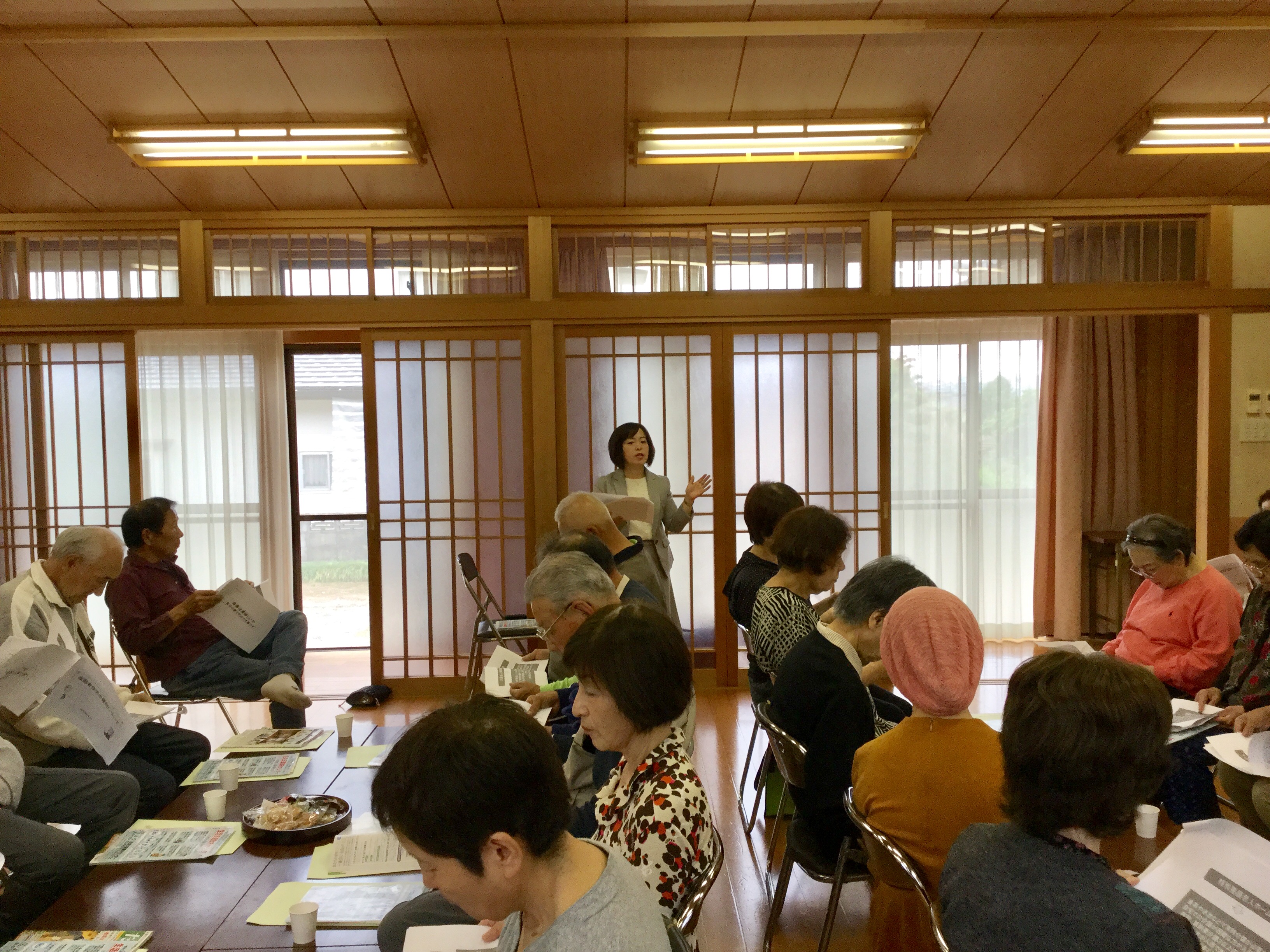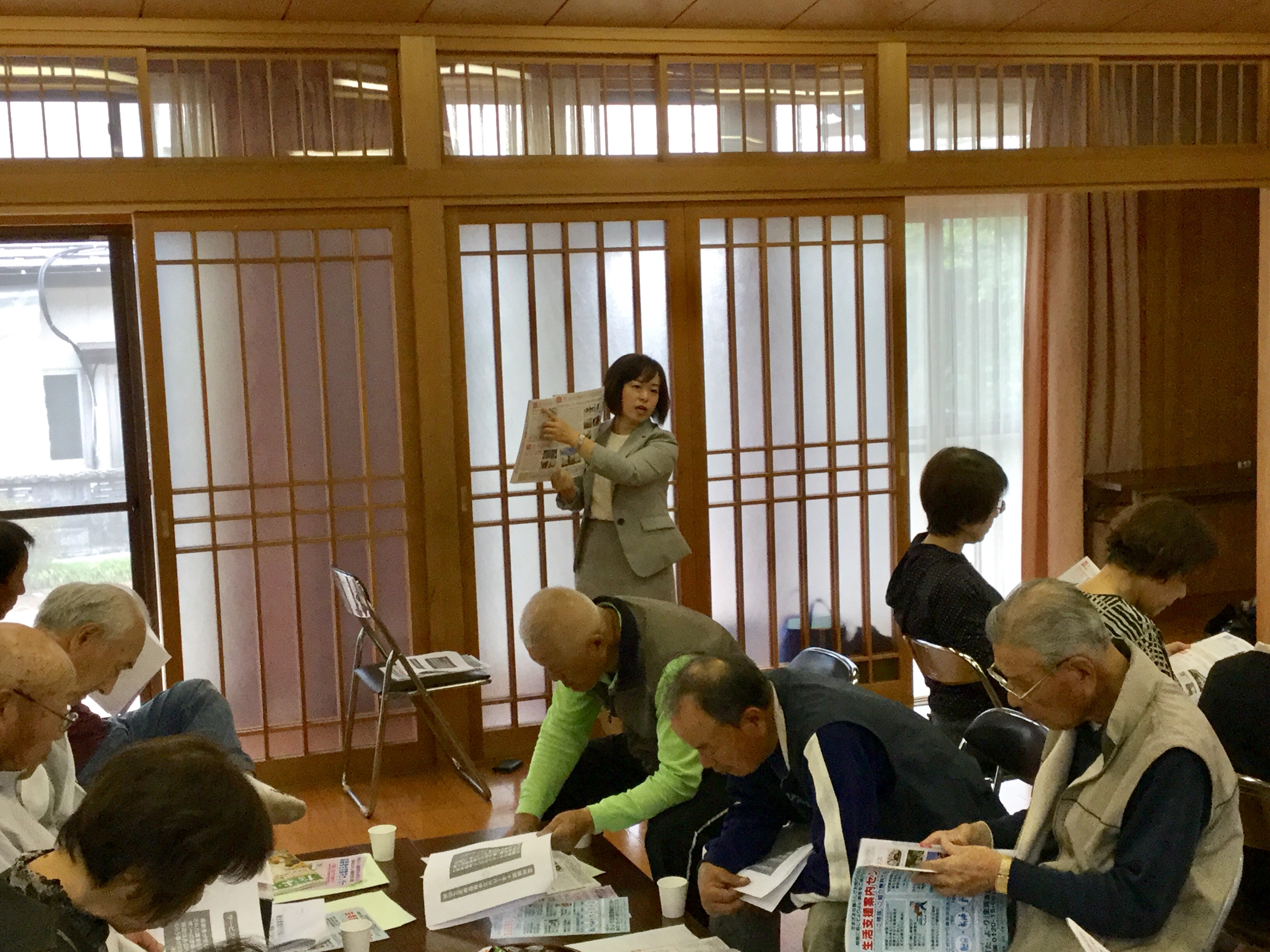 続いて、ささえりあ江津湖の中村様による介護保険制度や地域包括支援システムについてのお話。私も知識が不足している部分があり、興味深く聞くことができました。その後、同じくささえりあ江津湖の木庭様が、ささえりあの役割についてご説明。質問の声も上がり、きちんと学ぼうとする姿勢が感じられました。