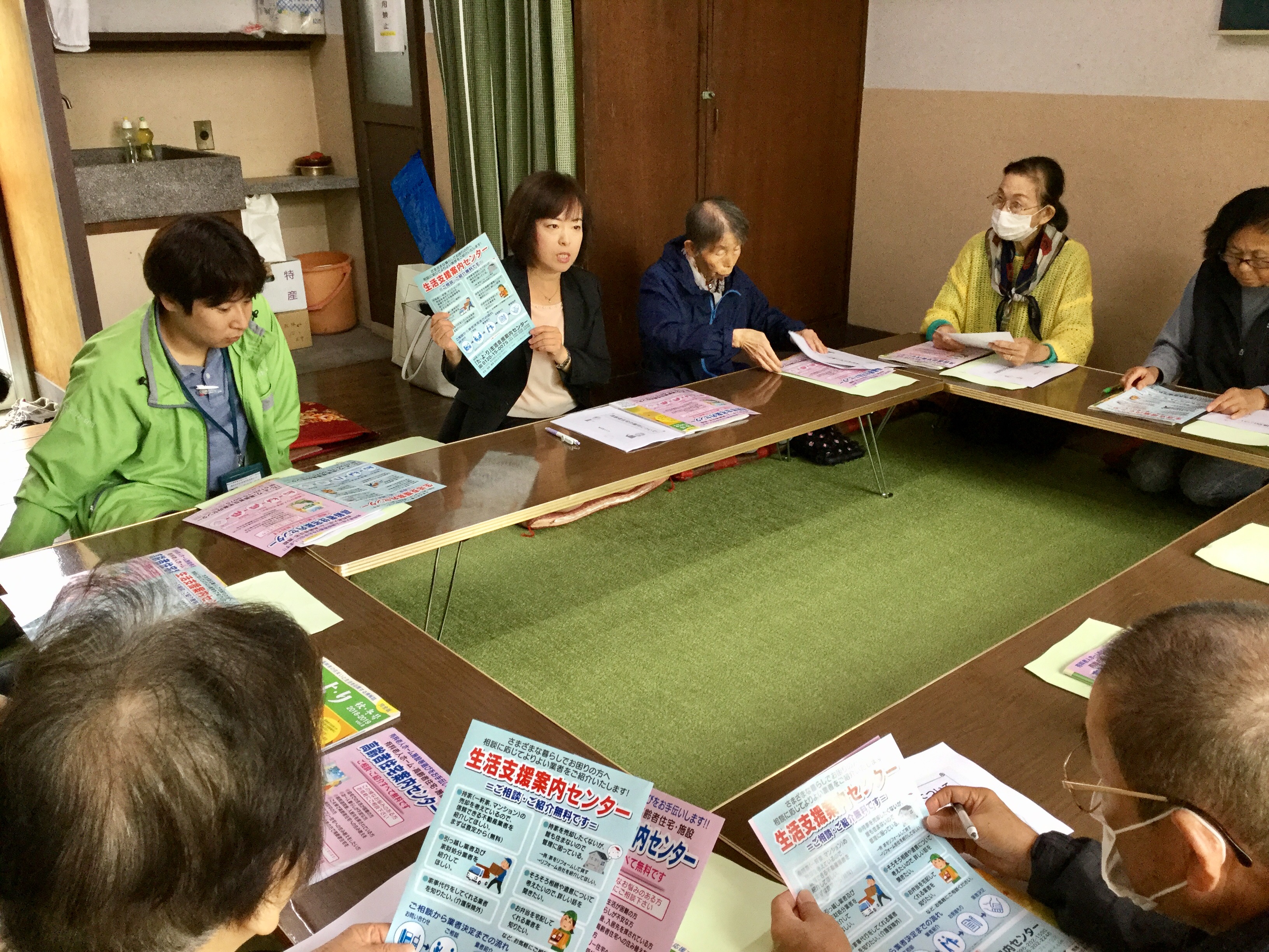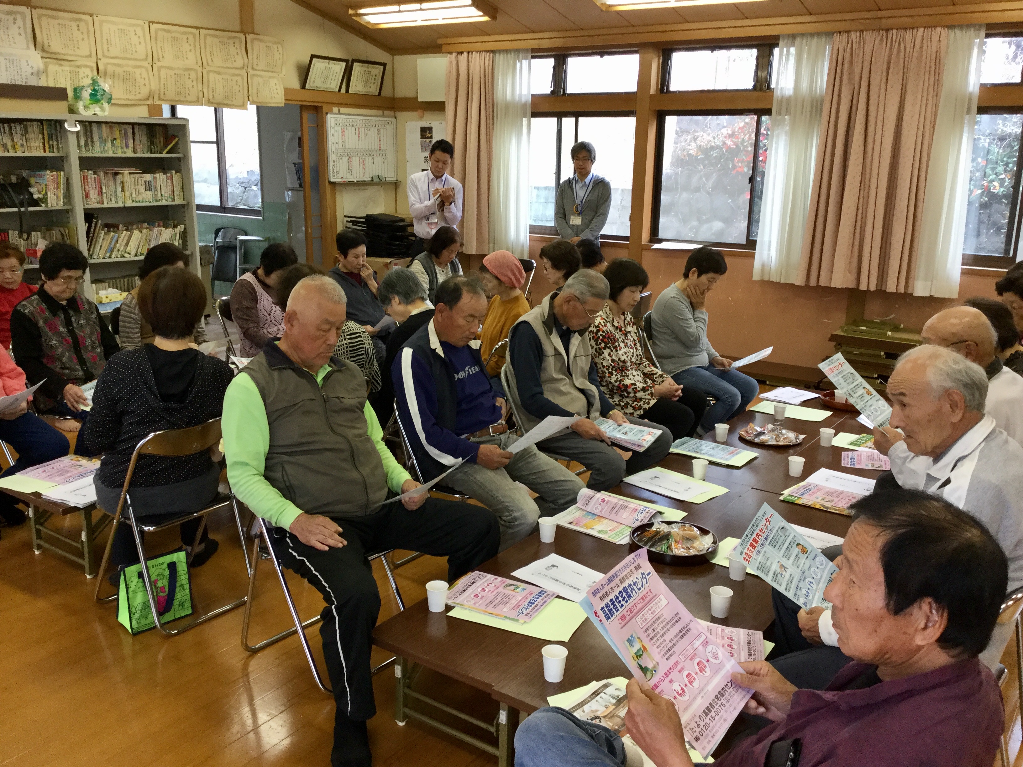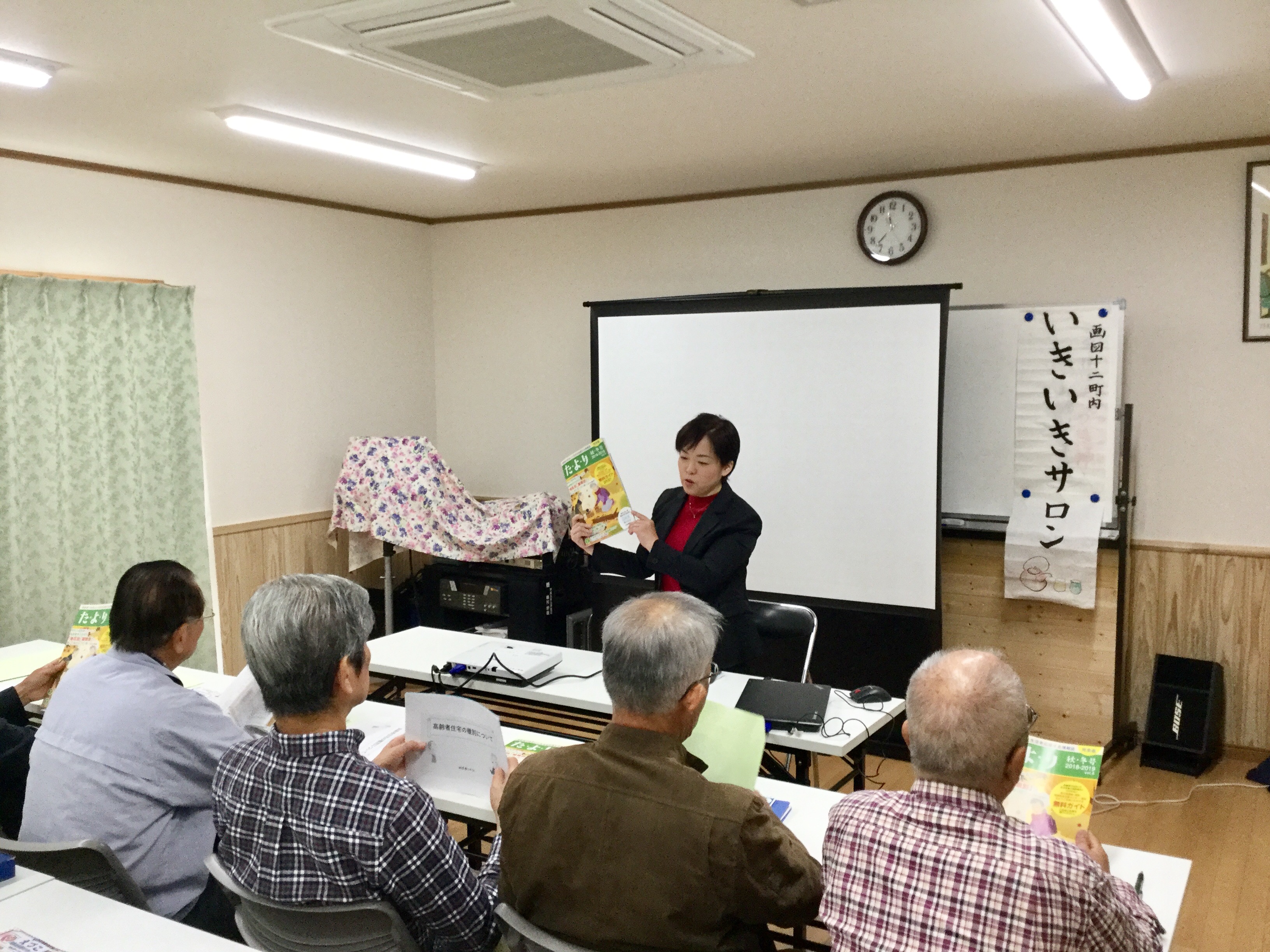 そしていよいよ弊社の番! 高齢者住宅・生活支援案内センターの話から、高齢者住宅の種別や気になるポイントなどをお話しました。配布した資料にメモを取っている方も多く、熱心に耳を傾けていらっしゃいました。