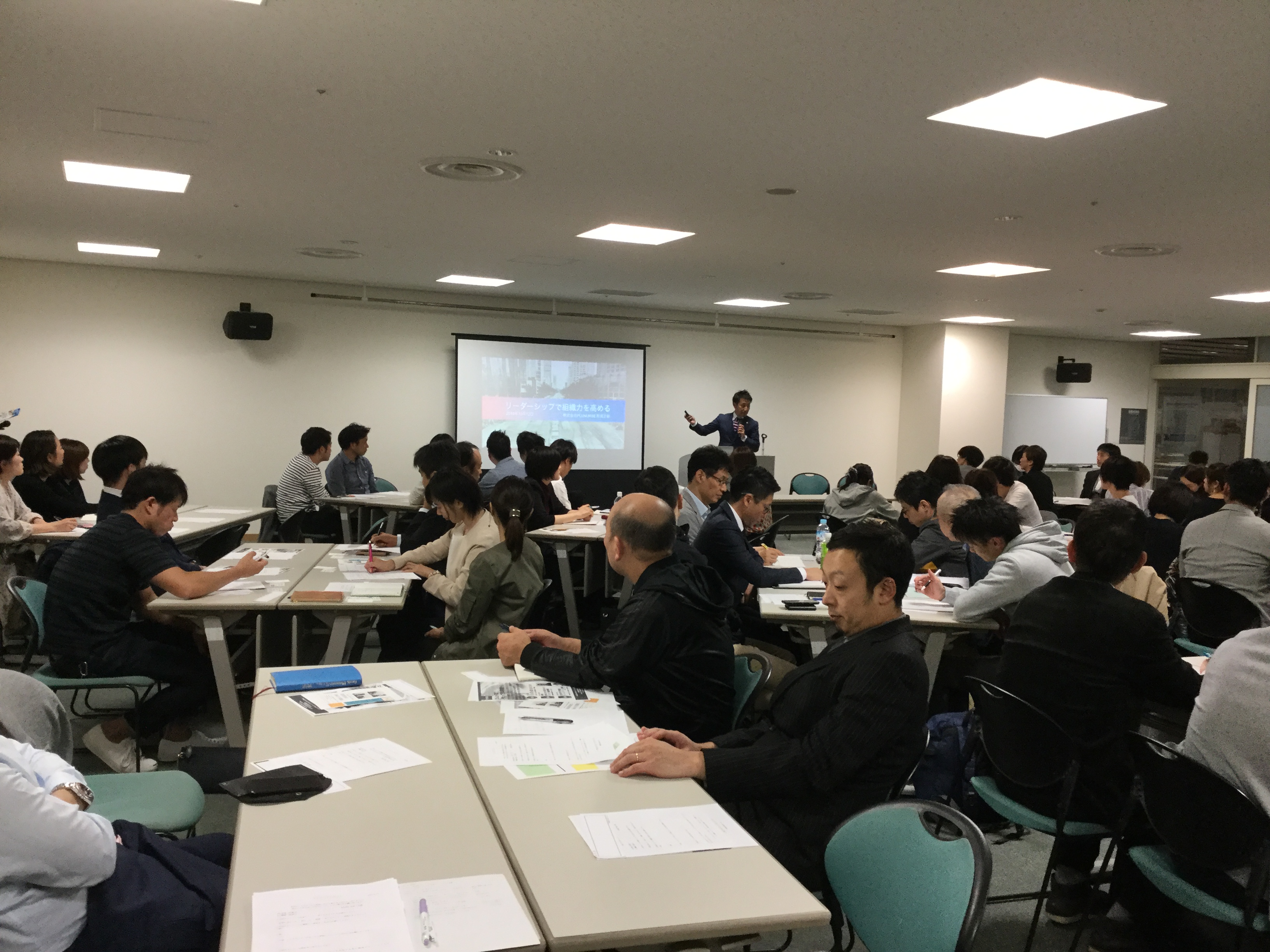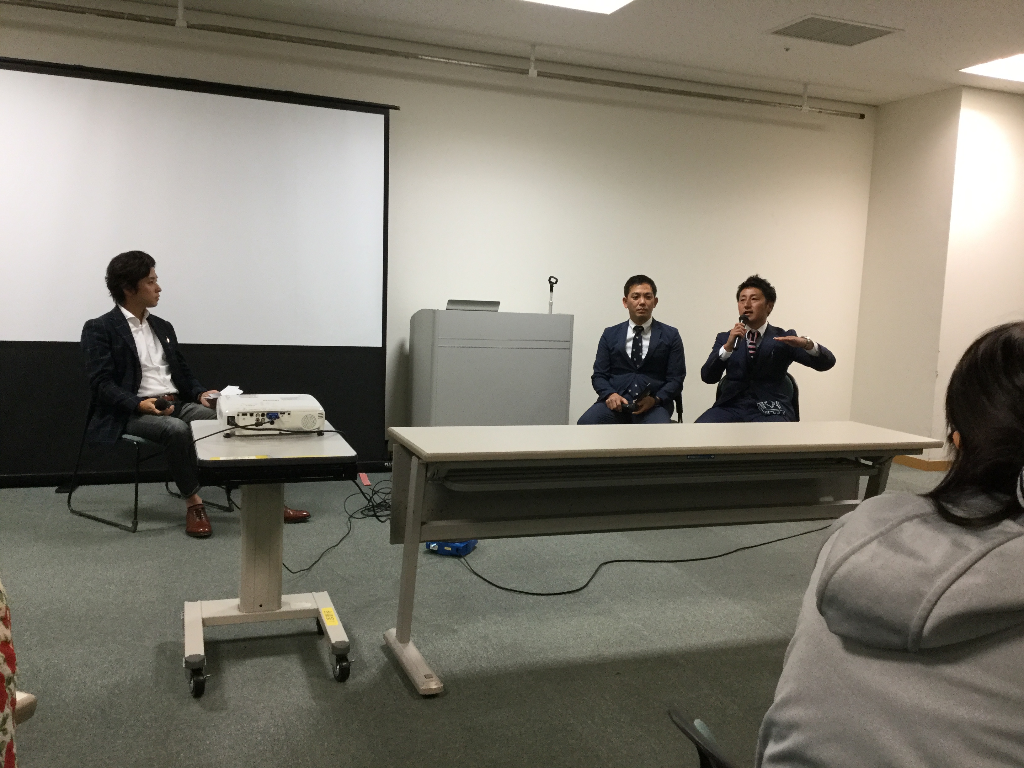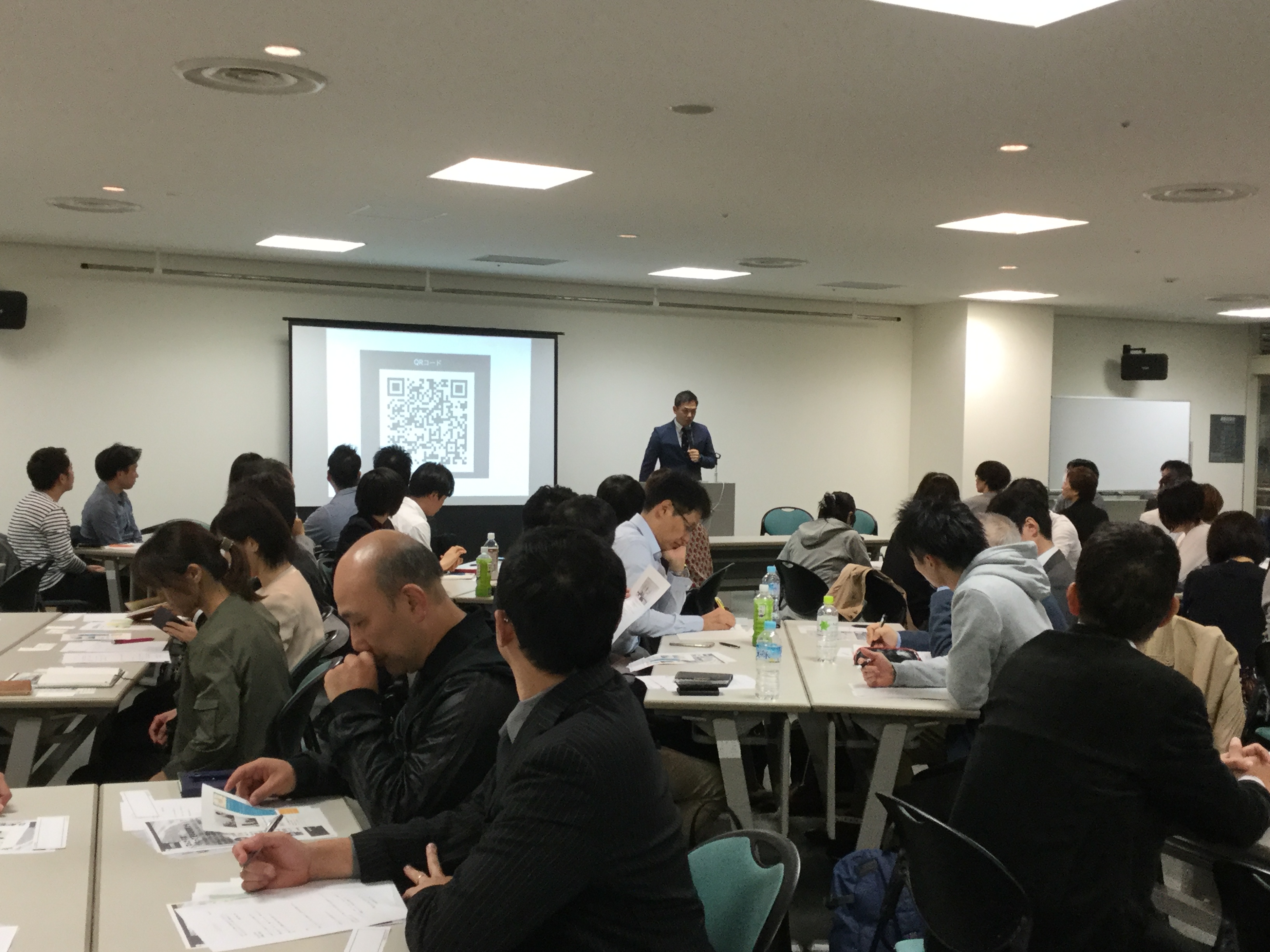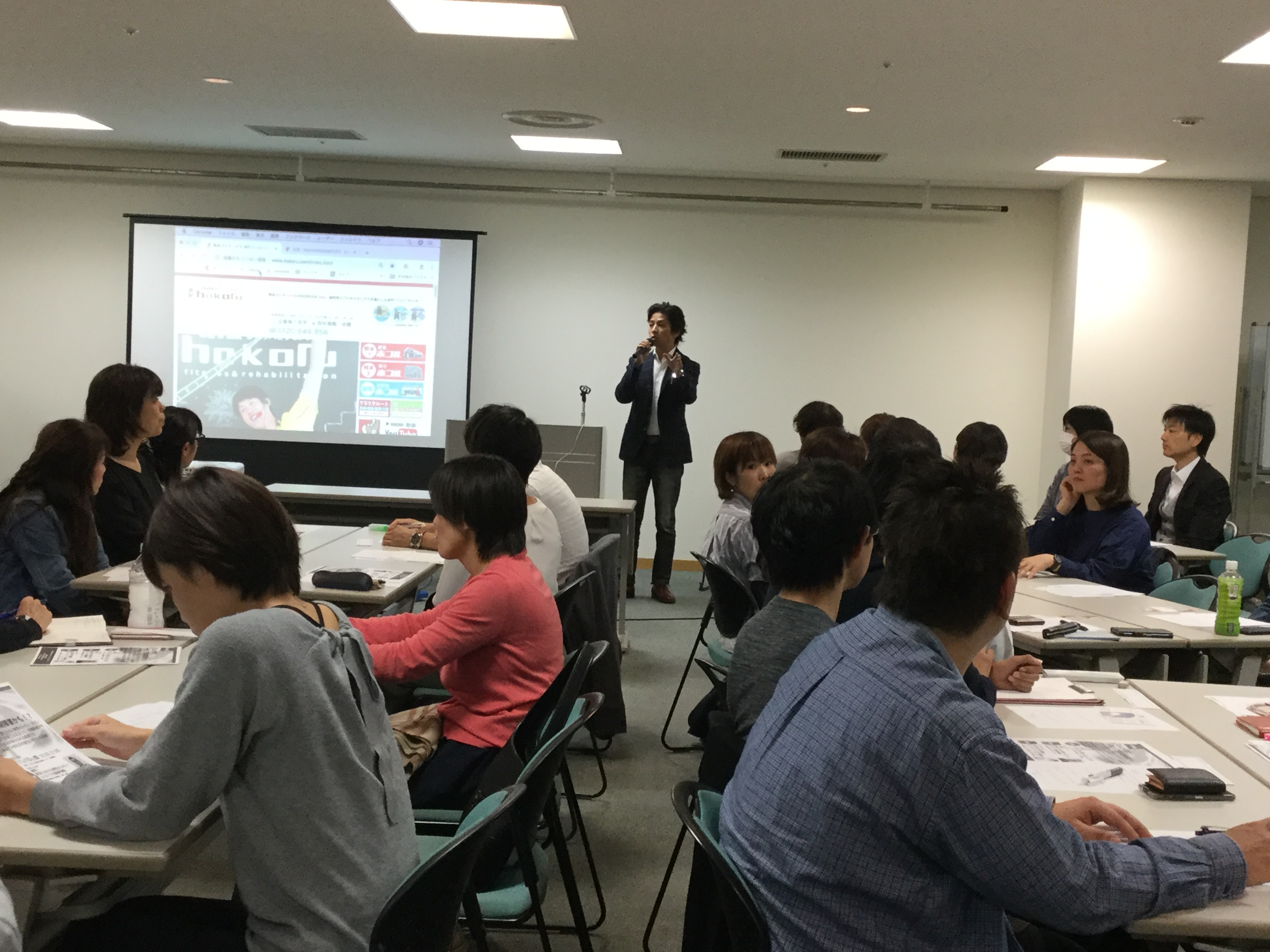 そしていよいよ弊社の番! 高齢者住宅・生活支援案内センターの話から、高齢者住宅の種別や気になるポイントなどをお話しました。配布した資料にメモを取っている方も多く、熱心に耳を傾けていらっしゃいました。