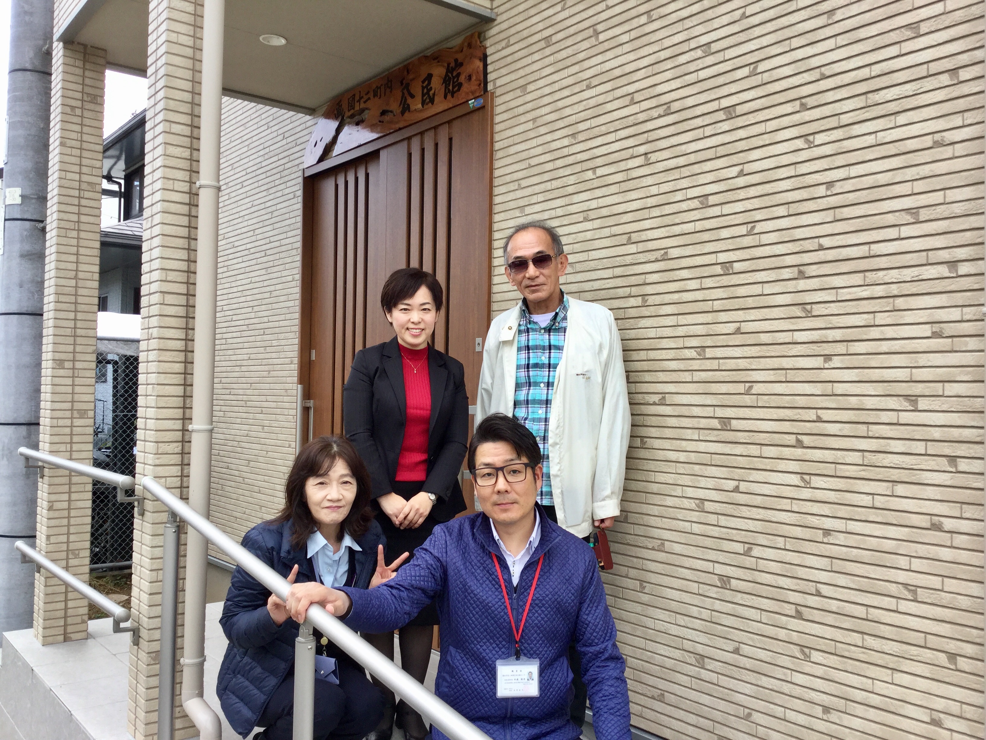 写真は左上から時計回りで、弊社・宮崎、自治会長・杉本様、ささえりあ江津湖・木庭様、ささえりあ江津湖・中村様です。このたびは大変お世話になりました。