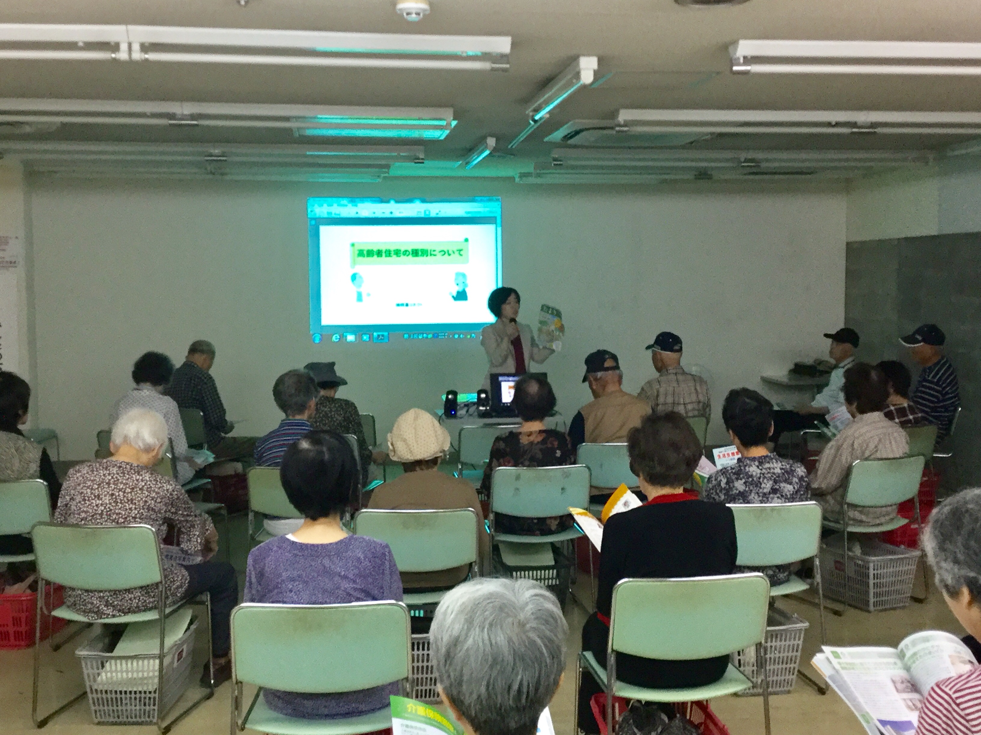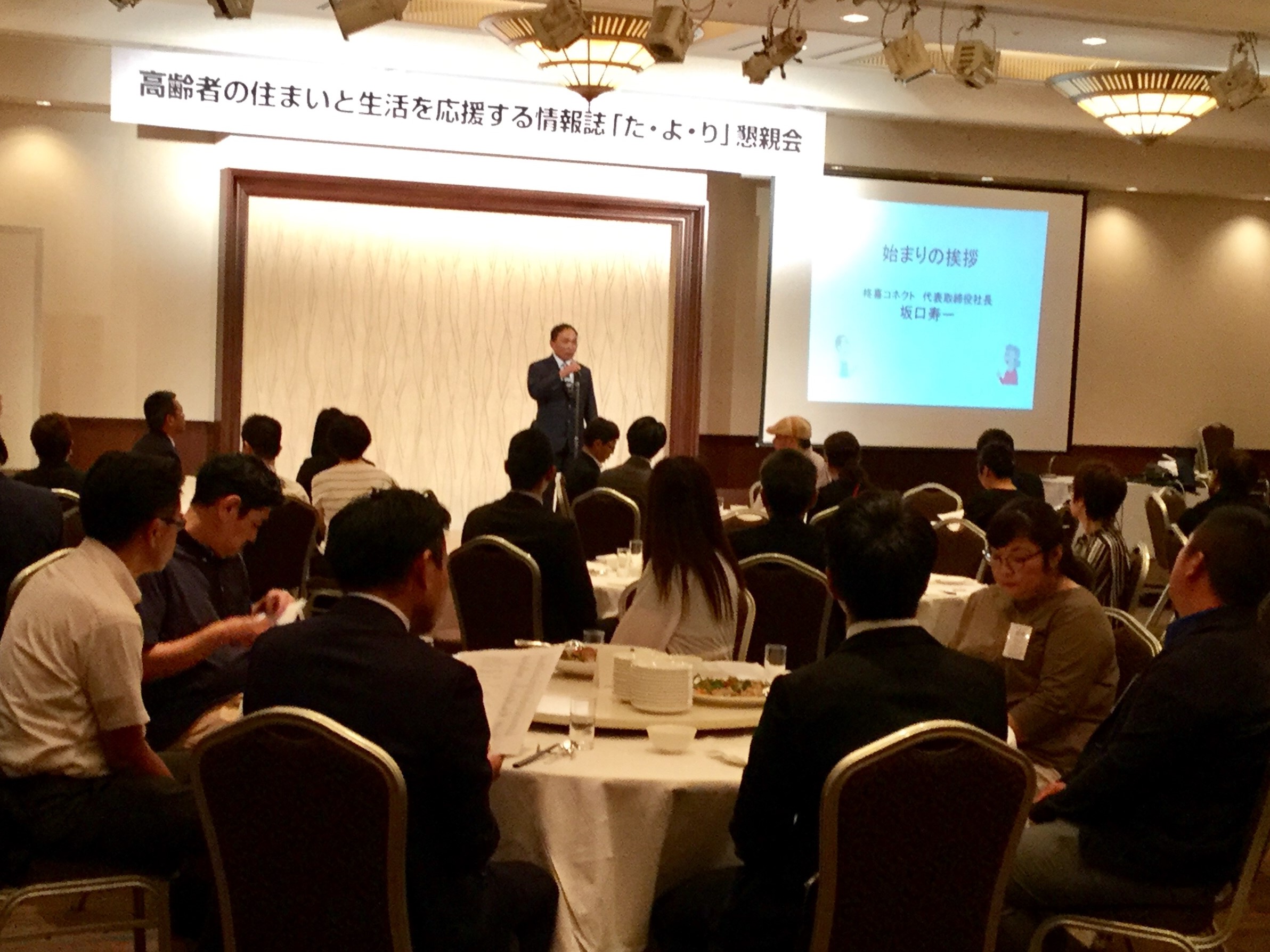 約10名に参加いただき、たより・たよりデイ版の話や高齢者住宅案内センターの業務についてご説明。また、弊社の実績データに基づいた分析や見解で、最近の入居相談や施設の傾向もお話しさせていただきました。