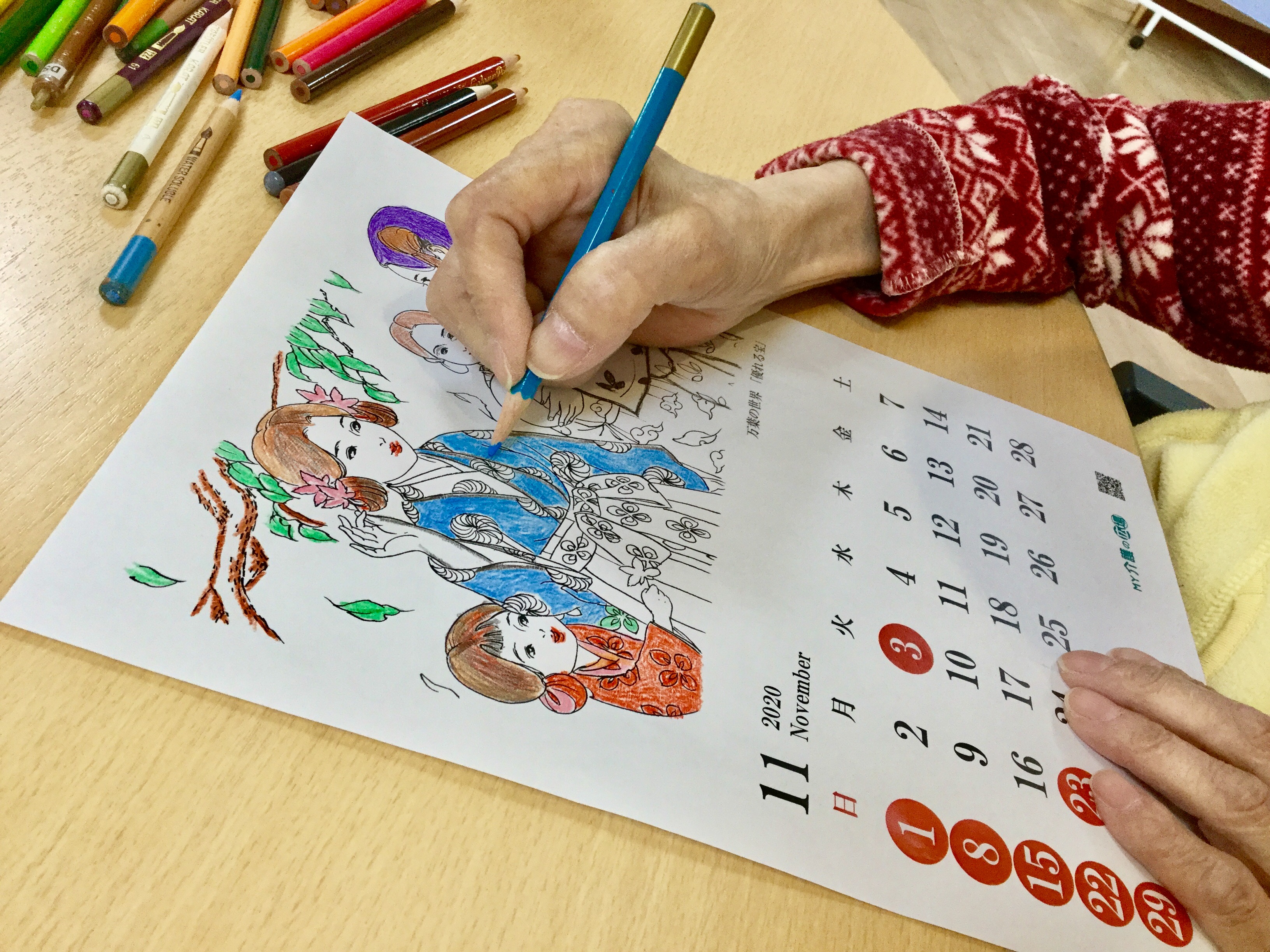 ちょうどお邪魔させていただいた時リビングルームでは、テレビを観る人、塗り絵をする人、パズルをする人、ゆっくりくつろいでいる人と、それぞれが好きな事をされていて、穏やかな時間が流れていました😊🍀