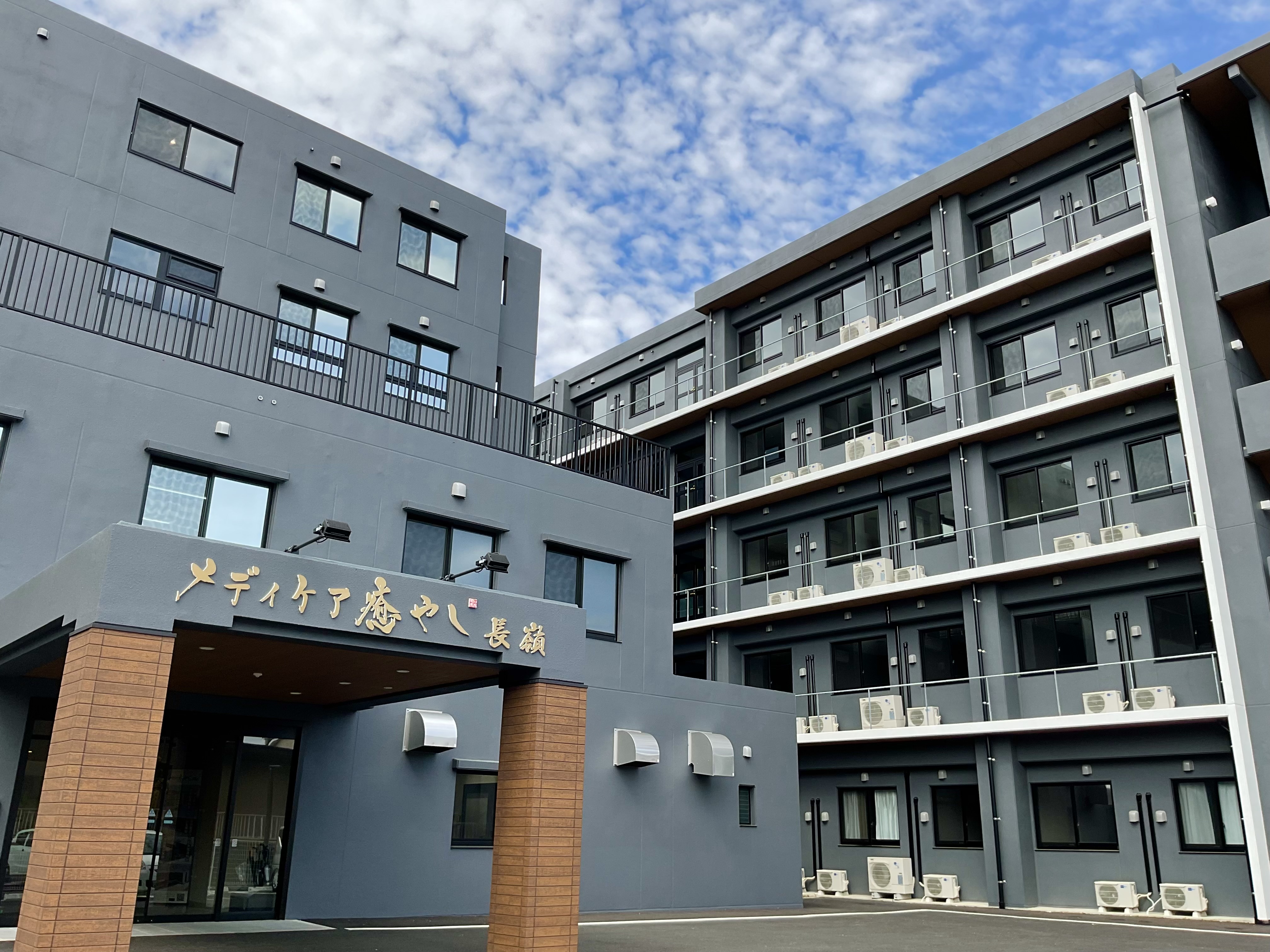 こちらは長嶺東の住宅街の中にあり、鉄筋コンクリート造の5階建てで重厚感があり洗練された雰囲気の佇まいになってます。メディケア癒やしグループでは熊本市内3棟目となり、居室数も313床と国内最大級となります。すごいですね!