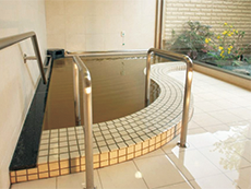 ▲ 地下1,000mより湧き出る天然温泉の浴室。リフト付き浴室もあり