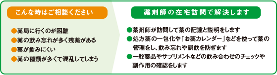 自宅や施設などで療養中の方に地域薬剤師が伺います