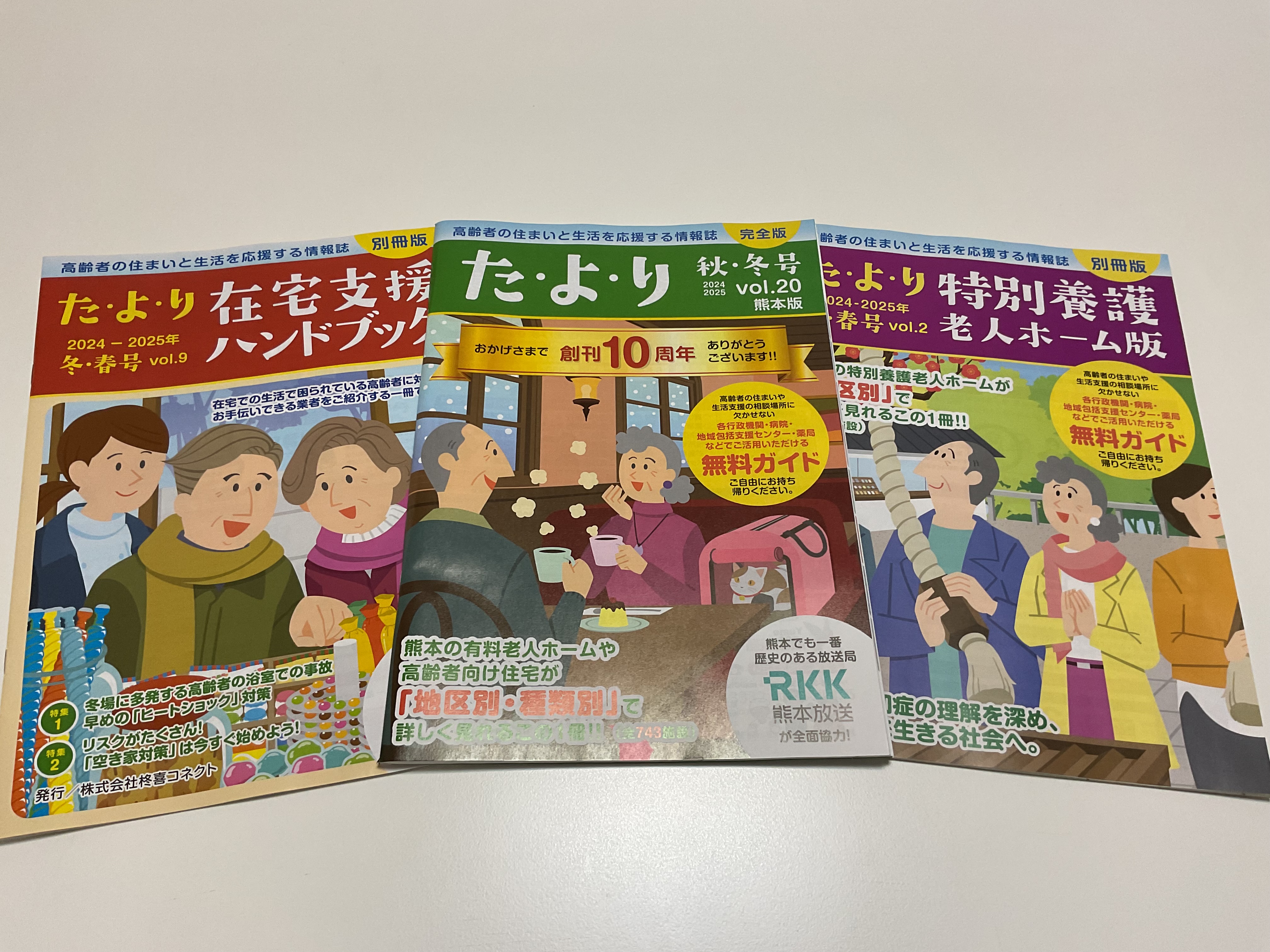 弊社も今年で設立丸10年を迎えます。4月には高齢者の住まいと生活を応援する情報誌『た・よ・り』21号目を発行致します。これもご掲載いただいています施設様、企業様、そして『た・よ・り』を必要としてくださる皆様のおかげだと思っております。